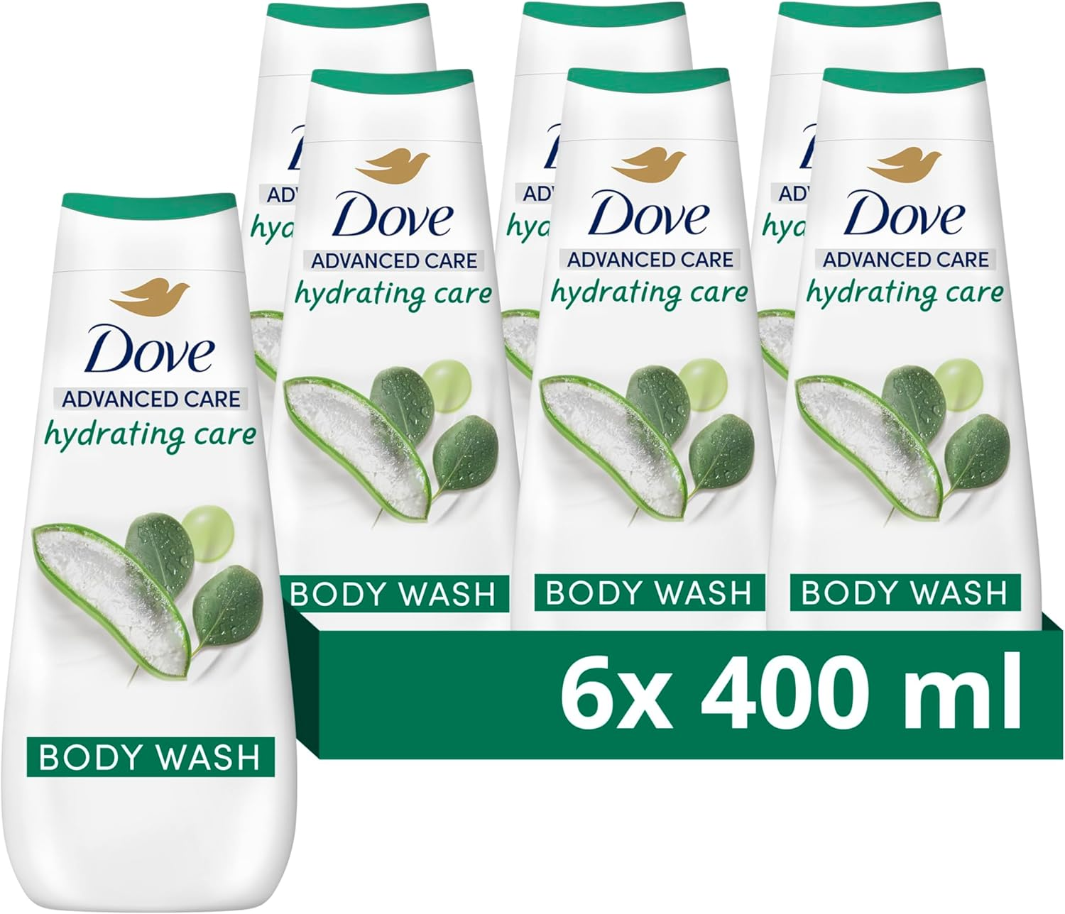 Dove Advanced Care Hydrating Care Body Wash Body Cleanser shower gel with aloe & birch water for instantly lotion-soft skin 6x 400 ml