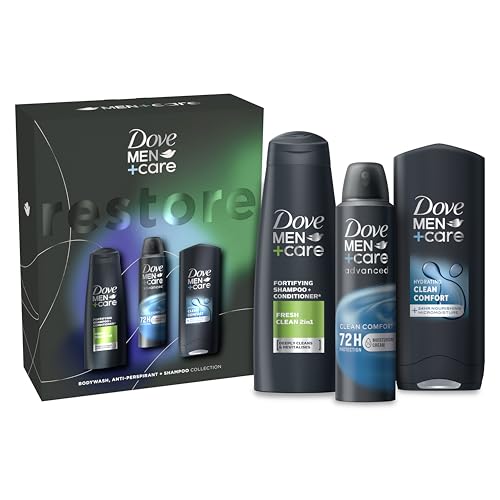 Dove Men+Care Clean Comfort Men's Gift Set for Him Trio: body wash, 2-in-1 shampoo & conditioner and anti-perspirant deodorant 3 piece