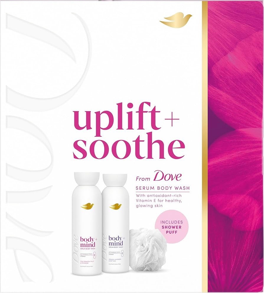 Dove Gift Set Uplift + Soothe Collection with x2 Body Wash / Shower Puff