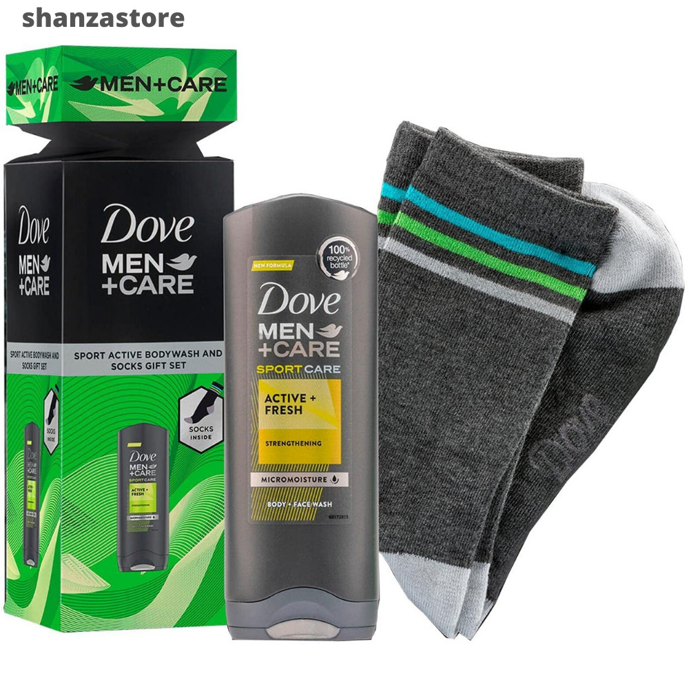Dove Men+Care Active+Fresh Face & Body Wash 250ml & Socks Gift Set for him