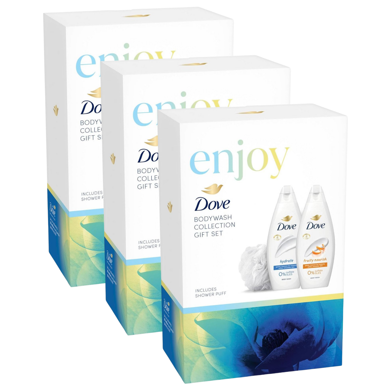 Dove Enjoy Duo Gift Set Body Wash Collection with a shower puff perfect gifts for her 2 piece