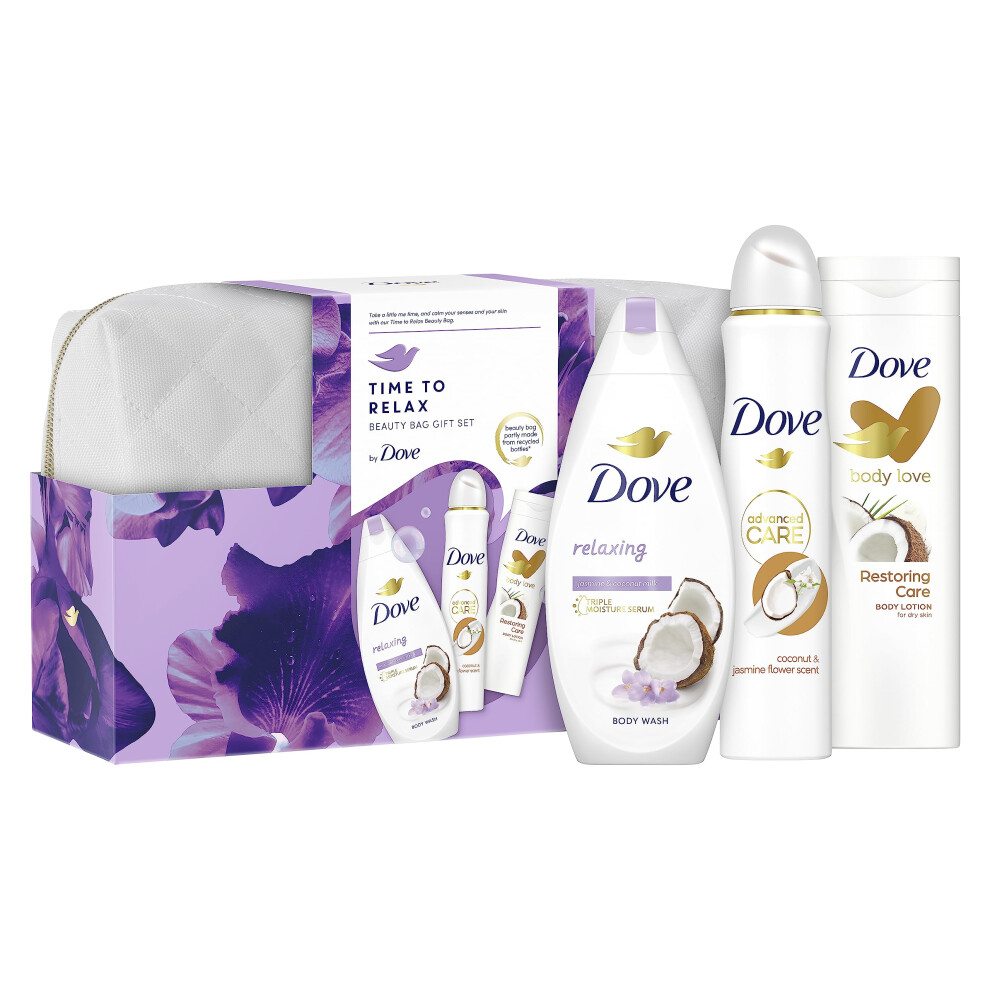 Dove Time to Relax 3-Piece Gift Set for Her - Moisturising Coconut Jasmine Body Wash, Restoring Body Lotion & Antiperspirant