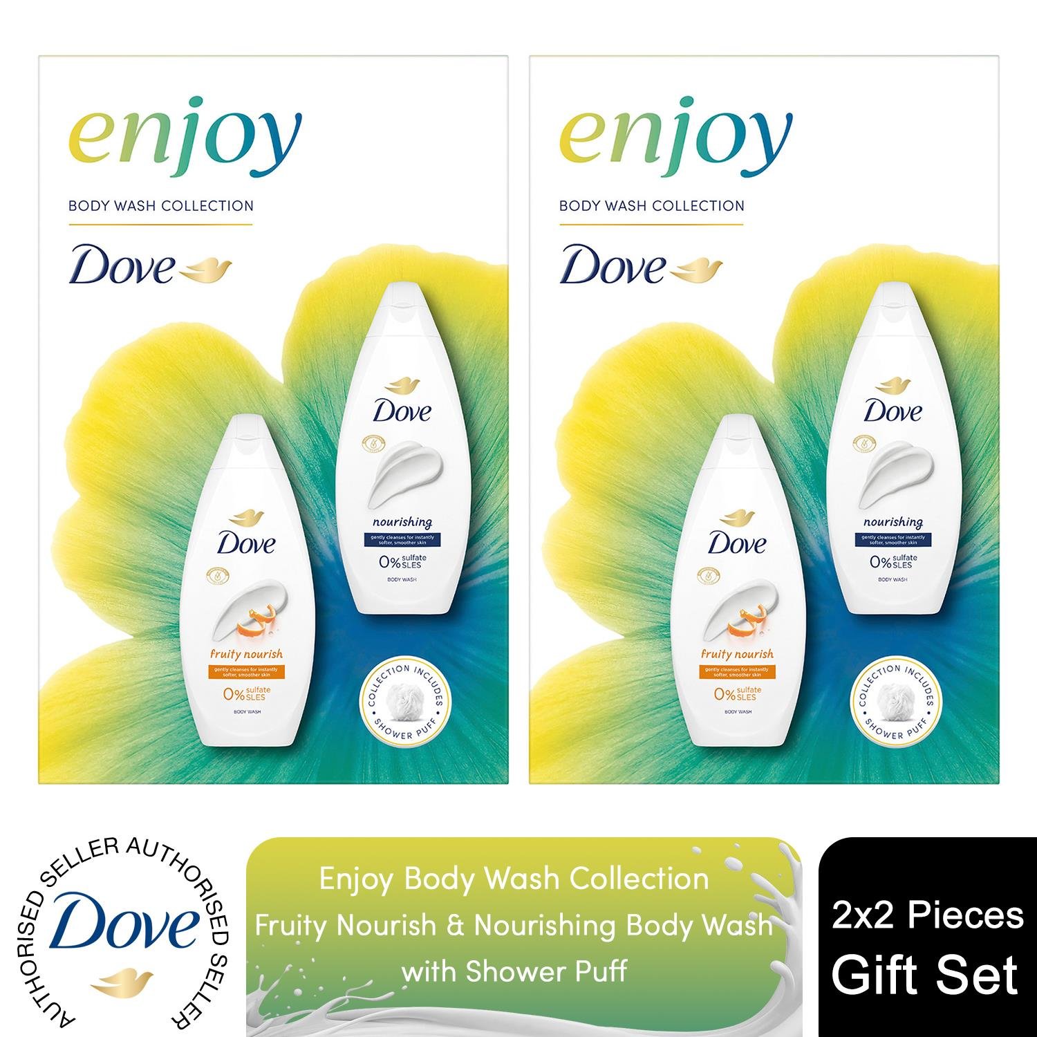 Dove Enjoy Duo Gift Set Body Wash Collection with a Shower Puff Perfect Gifts fo