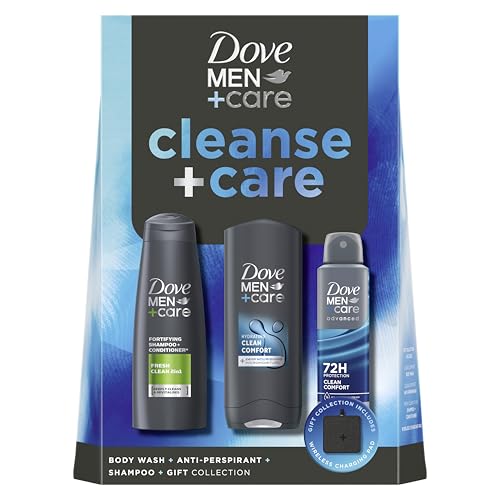 Dove Men+Care Cleanse+Care & Charging Pad Gift Set body wash, 2-in-1 shampoo & conditioner and anti-perspirant perfect gifts for men 3 piece