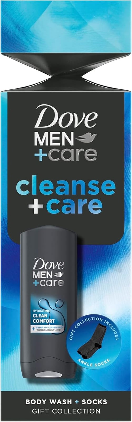Dove Men+Care Cleanse+Care Body Wash & Socks Gift Set with a 3-In-1 Hair, Face &