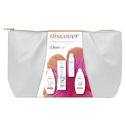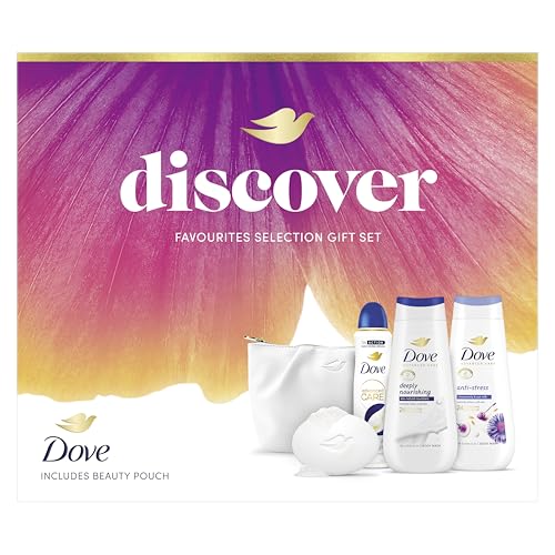 Dove Discover Favourites Selection Gift Set with two body washes, an anti-perspirant, a beauty bar and a Beauty Pouch perfect gifts for her 4 piece