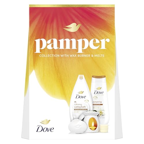 Dove Pamper Collection Gift Set with a body wash, bath soak, beauty bar, Wax Burner & Melts perfect gifts for her 3 piece