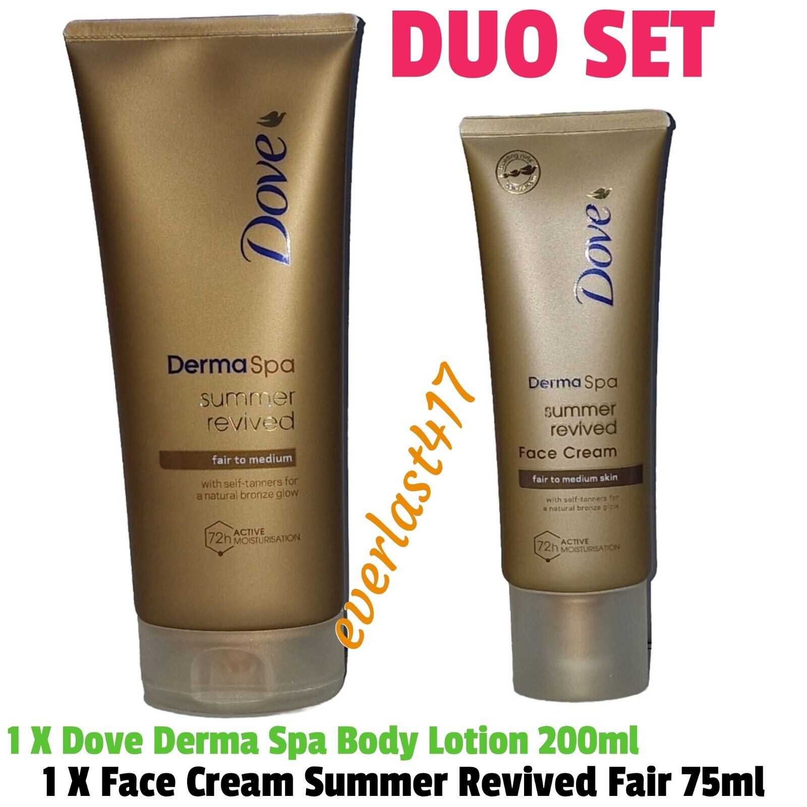Dove Derma Spa Body Lotion,200ml+Face Cream Summer Revived Fair 75ml,2 Piece Set