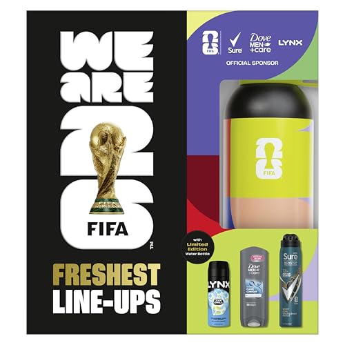 Dove Men+Care, Lynx, Sure Men Hydrate Water Bottle Gift Set with an advanced anti-perspirant, body wash, body spray & limited edition water bottle Freshest Line-Ups for him 3 pc