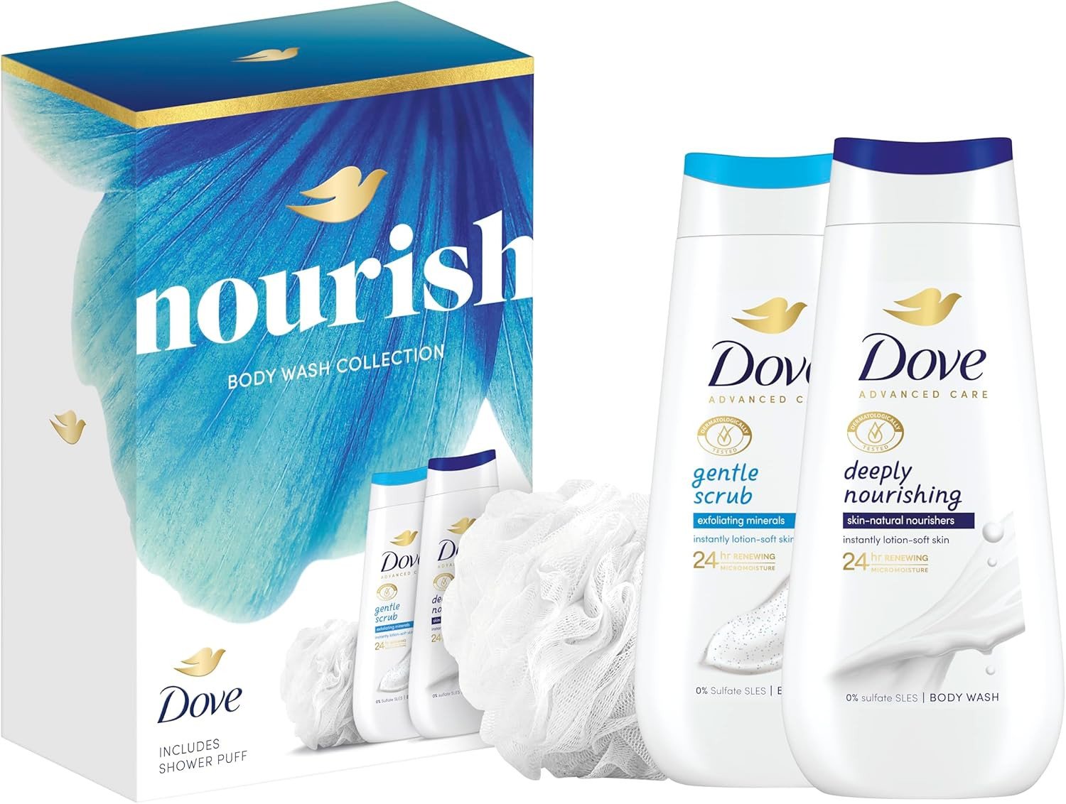 Dove Nourish Body Wash Collection Gift Set Includes Shower Puff