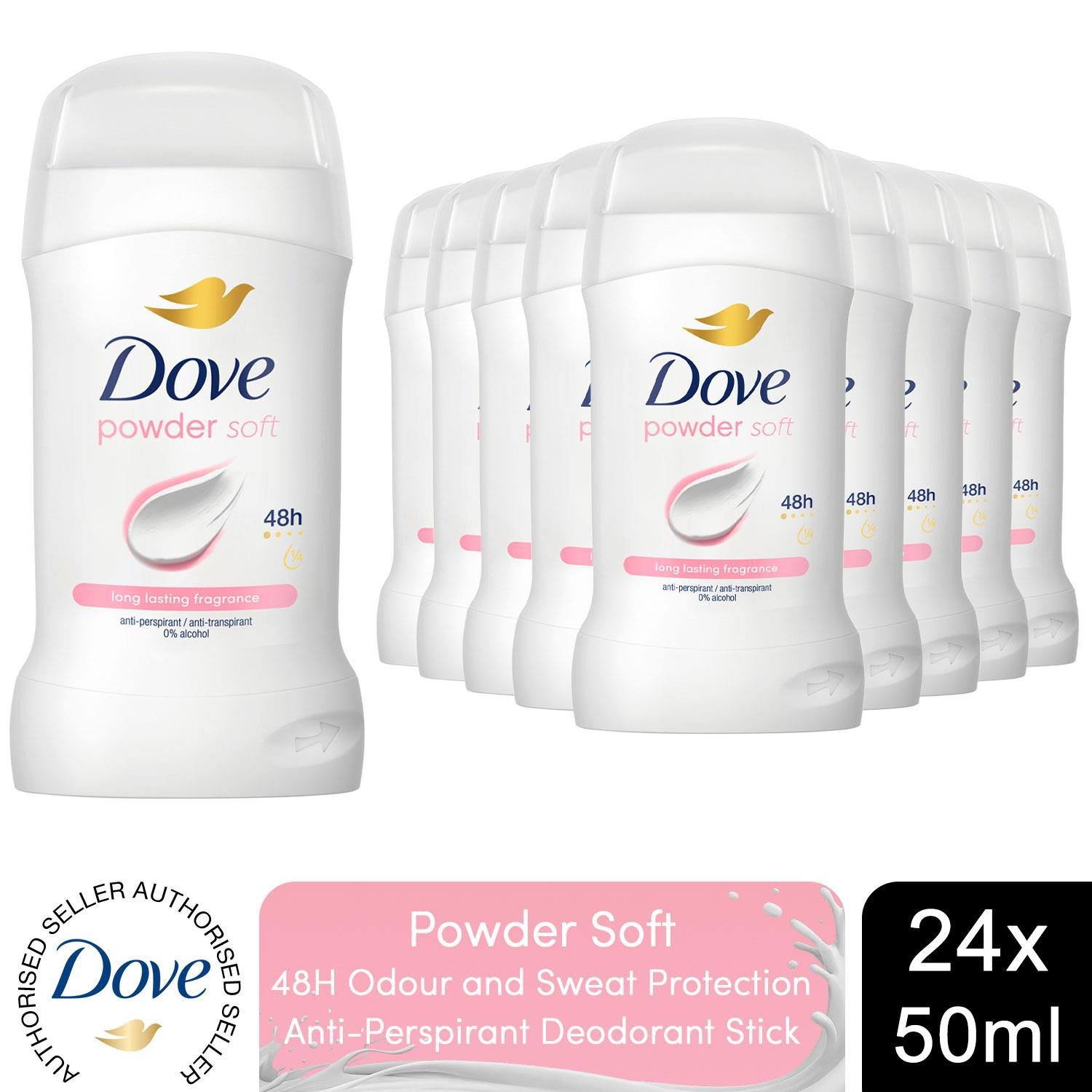 Dove Women Powder Soft Anti-Perspirant Deo Stick with 48H Protection 50ml, 24 Pk