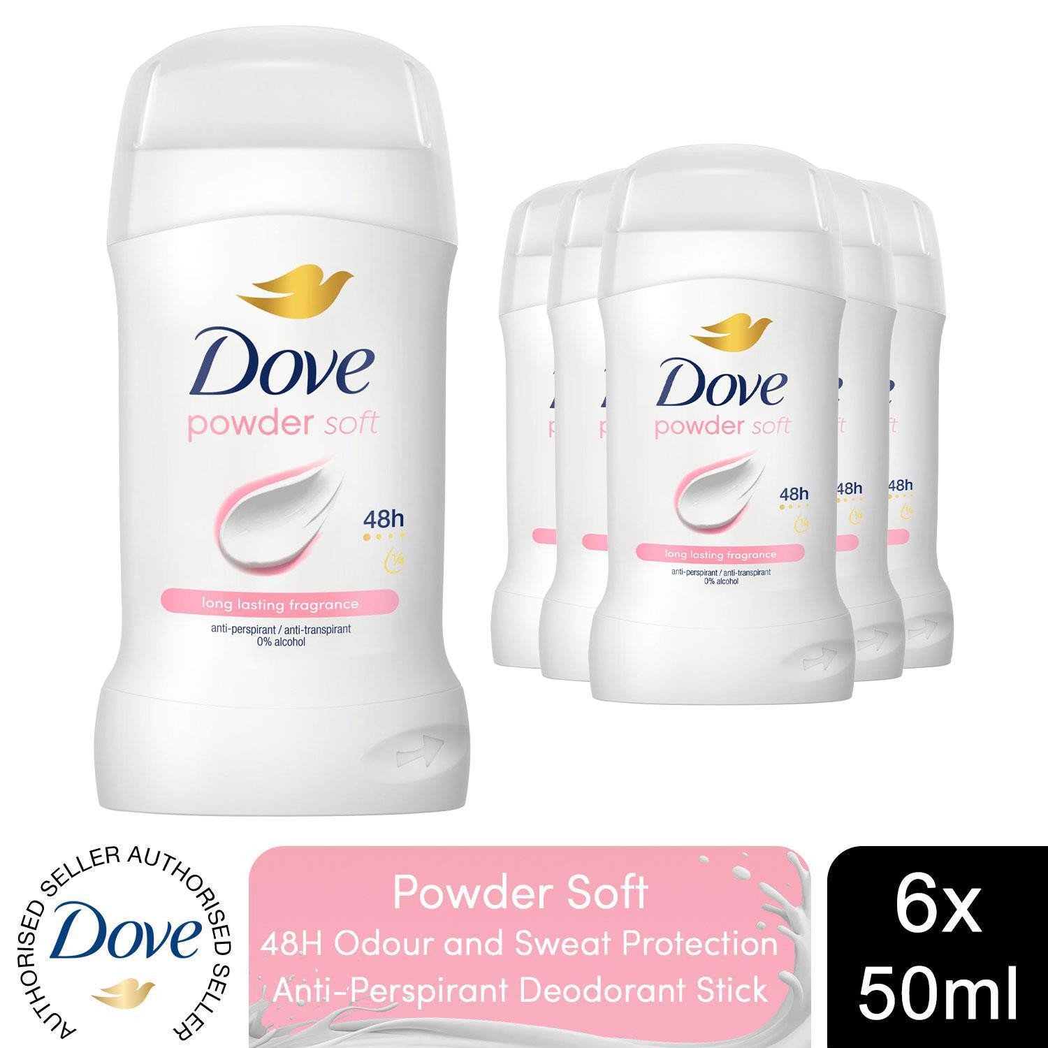 Dove Women Powder Soft Anti-Perspirant Deo Stick with 48H Protection 50ml, 6 Pk