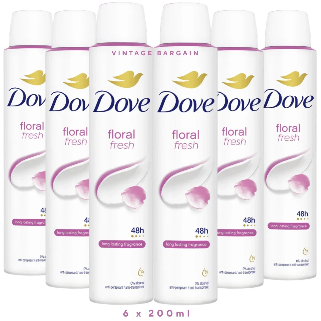 6 X 200ml Dove Women Floral Fresh Antiperspirant long lasting deodorant spray