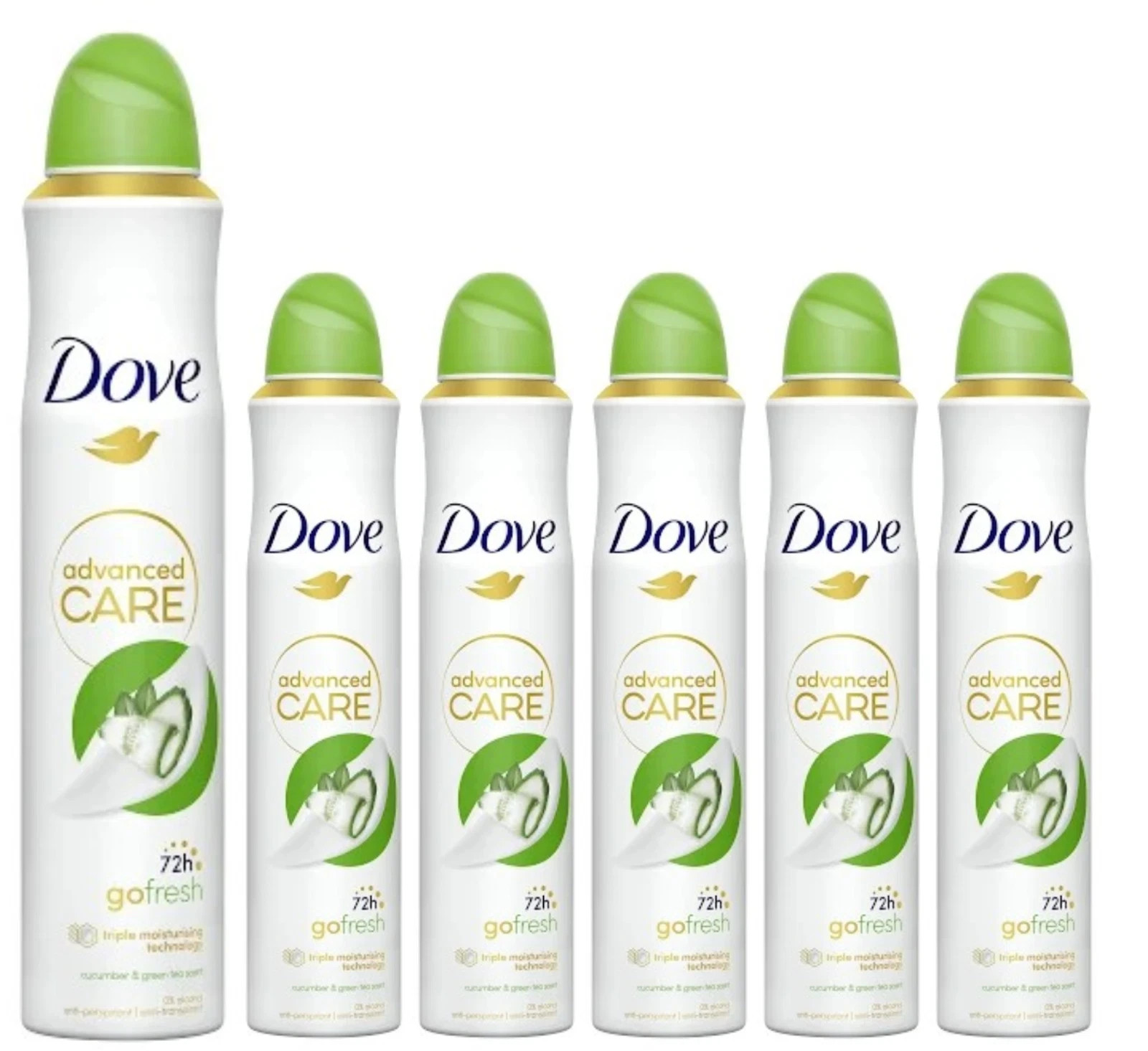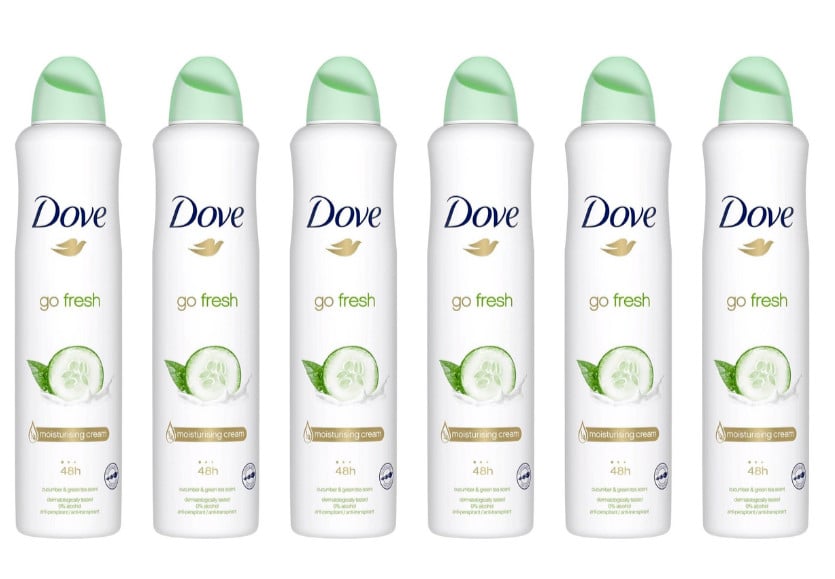 6 x 250ml Dove Cucumber & Green Tea Scent Anti-perspirant Deodorant Body Spray