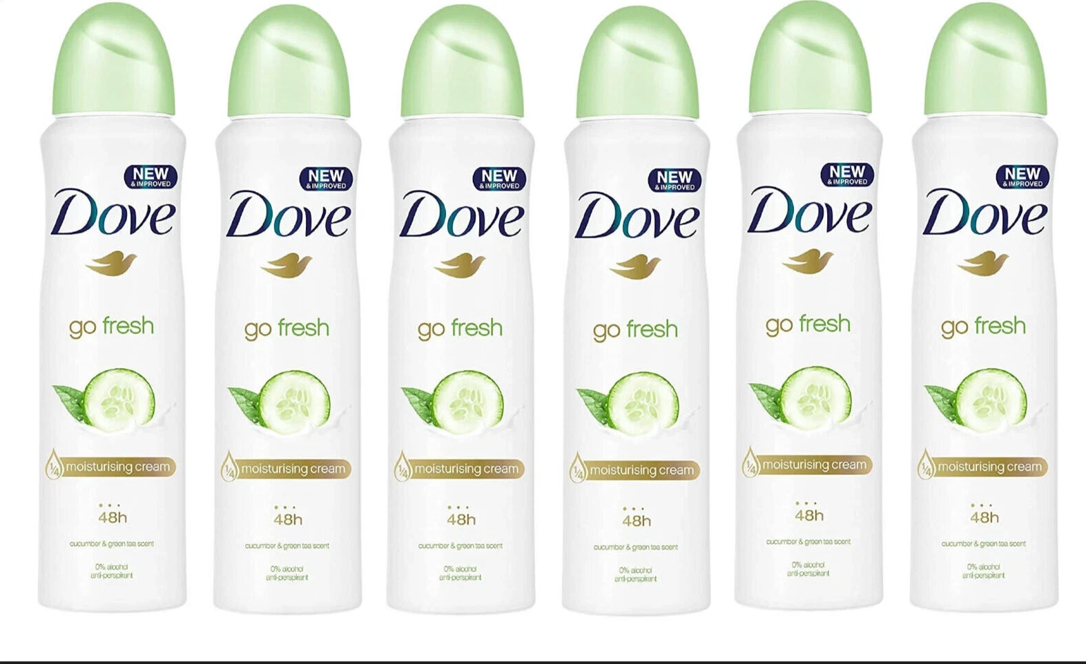 6x Dove Go Fresh Cucumber & Green Tea Deo Deodorant Spray 250ml 48h!