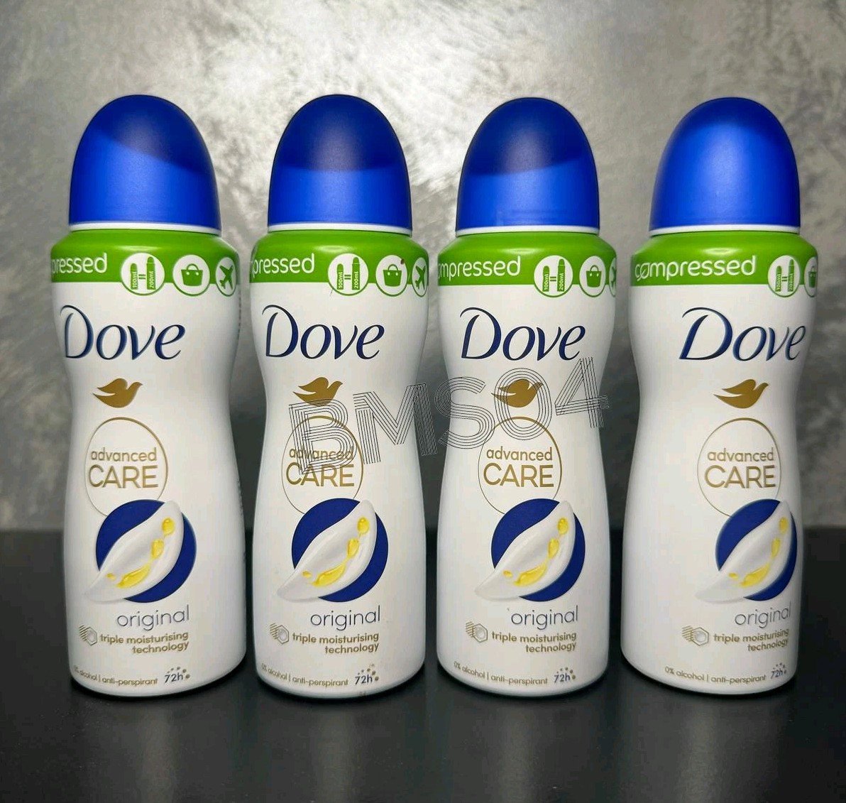 4 x 100ml Dove Compressed Deodorant Antiperspirant Spray Travel Size 72h
