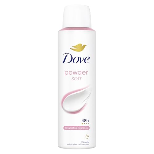 Dove Powder Soft Women's Antiperspirant Deodorant Body Spray for 48 hour sweat and odour protection with ¼ moisturising cream 150 ml, Pack of 6