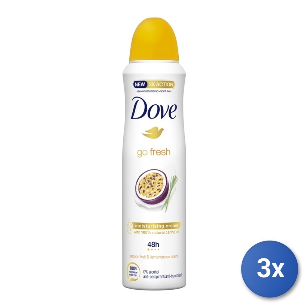 3x Dove Deodorant Spray 150 Ml. Go Fresh Passion Fruit