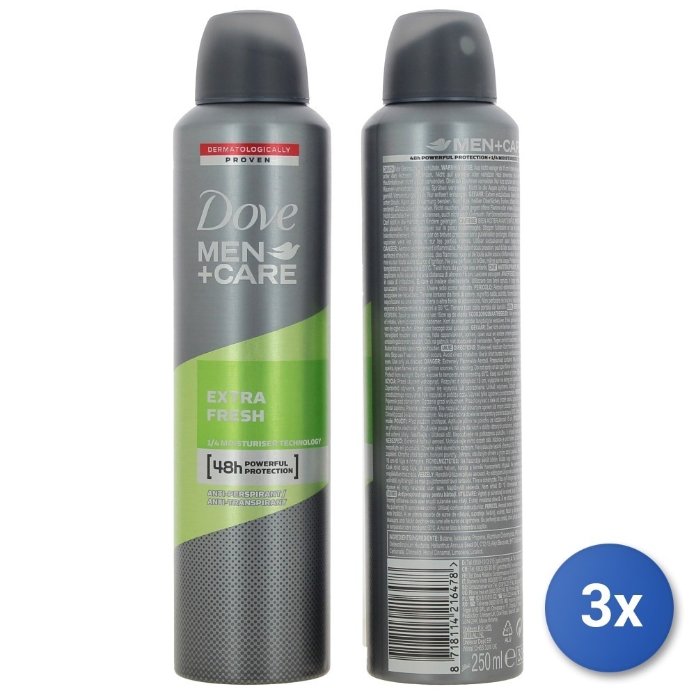 3x Dove Deodorant Spray 250 ml Men Extra Fresh