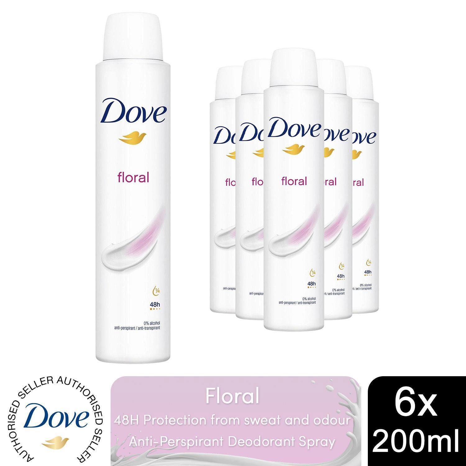 Dove Floral Fresh Women's Antiperspirant Deodorant Body Spray for 48 hour sweat and odour protection with ¼ moisturising cream 200 ml, Pack of 6