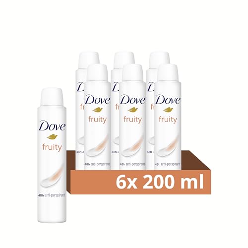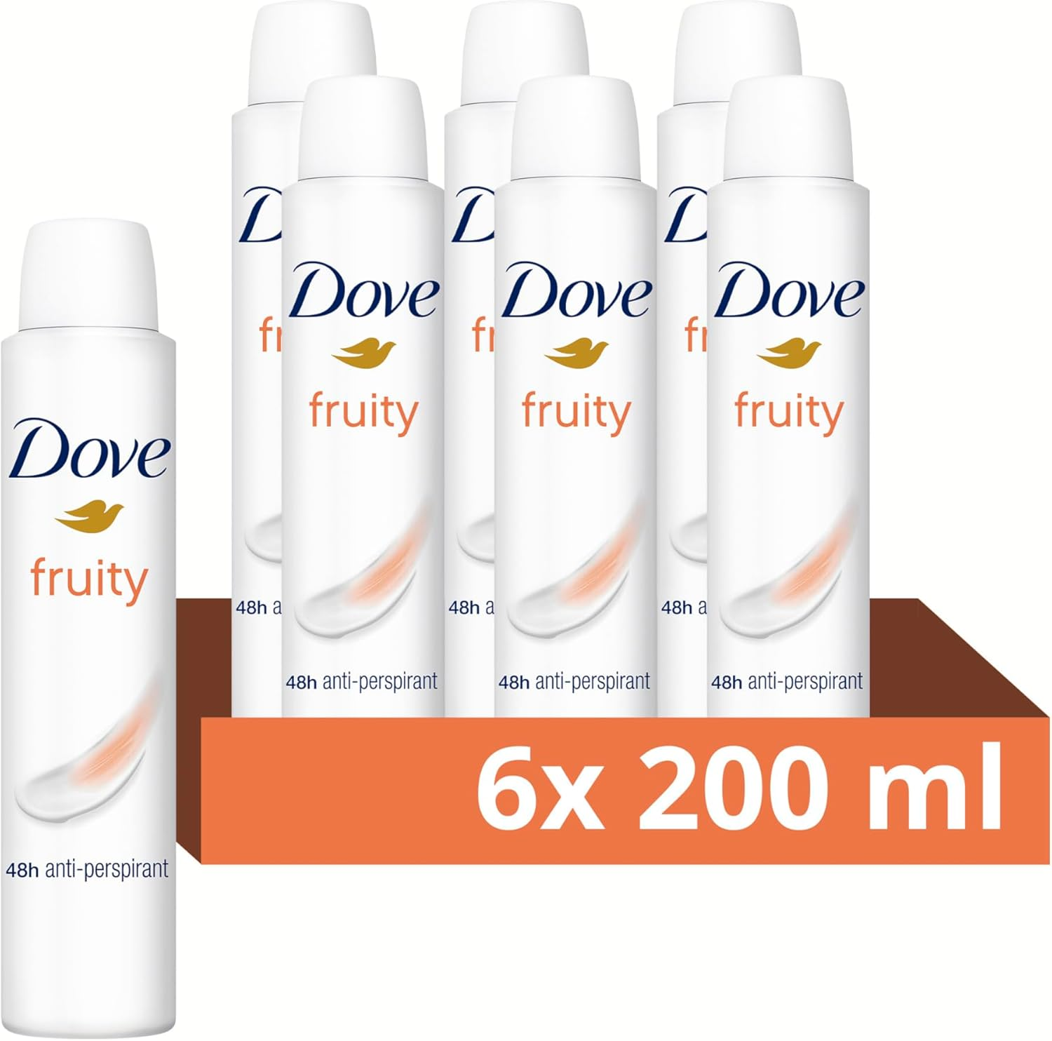 Dove Fruity Fresh Women's Antiperspirant Deodorant Body Spray for 48 hour sweat and odour protection with ¼ moisturising cream 200 ml, Pack of 6