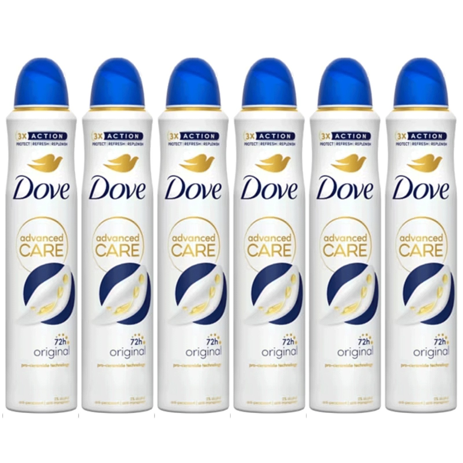 6 x DOVE ORIGINAL ANTIPERSPIRANT DEODORANT SPRAY ADVANCE CARE 72hr 250ml