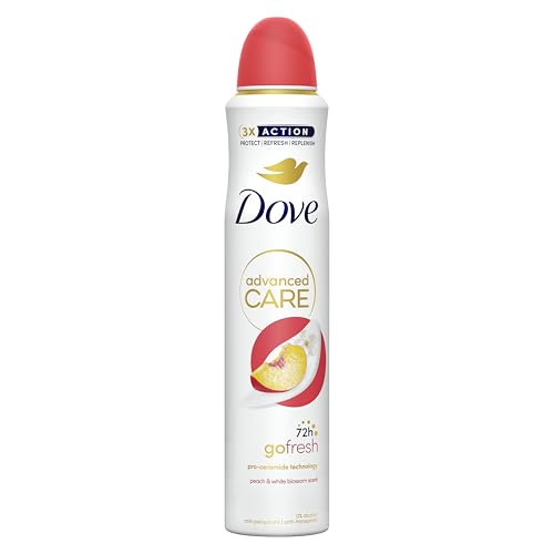 Dove Advanced Care Go Fresh Peach & White Blossom Scent Women's Antiperspirant Deodorant Spray for 72 hour protection against sweat and odour with Pro-Ceramide technology 200 ml, Pack of 6