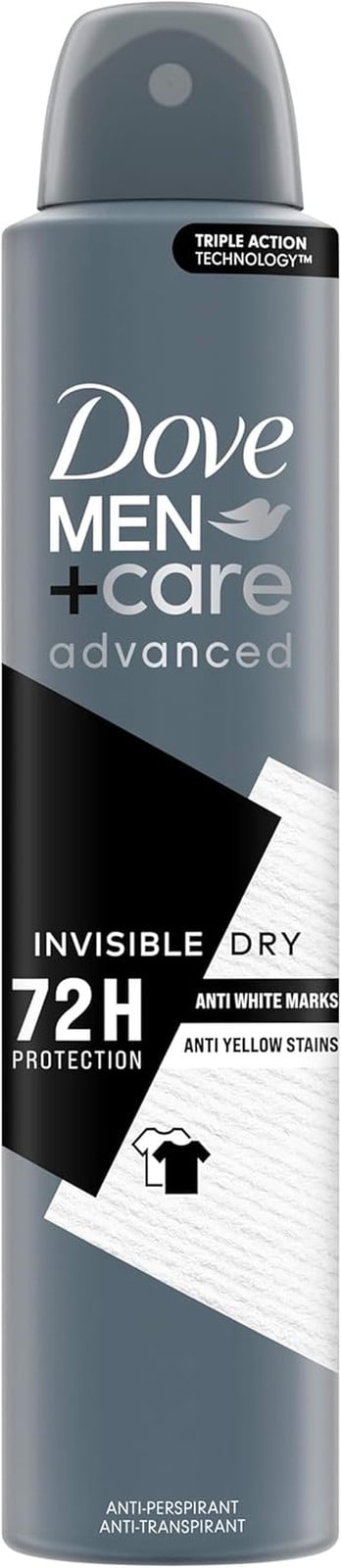 Dove Men+Care Advanced Invisible Dry Men's Antiperspirant Deodorant Body Spray with ¼ moisturising cream & Triple Action technology for 72 hour sweat and odour protection 200 ml