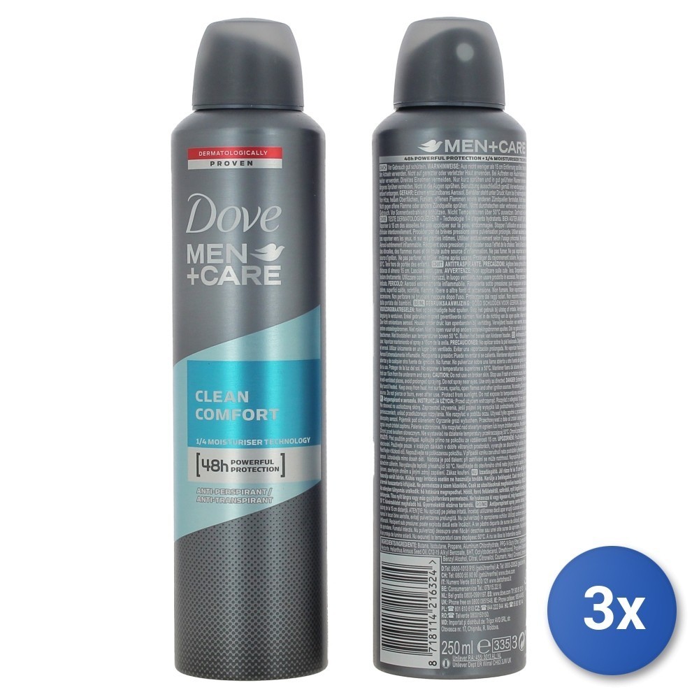 3x Dove Deodorant Spray 250 Ml Men Clean Comfort