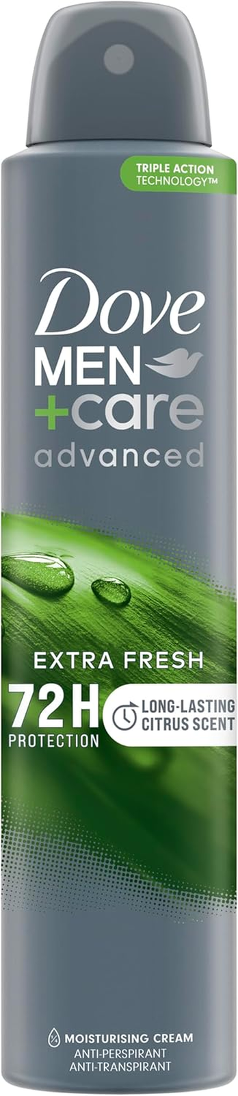 Dove Men+Care Advanced Extra Fresh Men's Antiperspirant Deodorant Body Spray with ¼ moisturising cream & Triple Action technology for 72 hour sweat and odour protection 200 ml