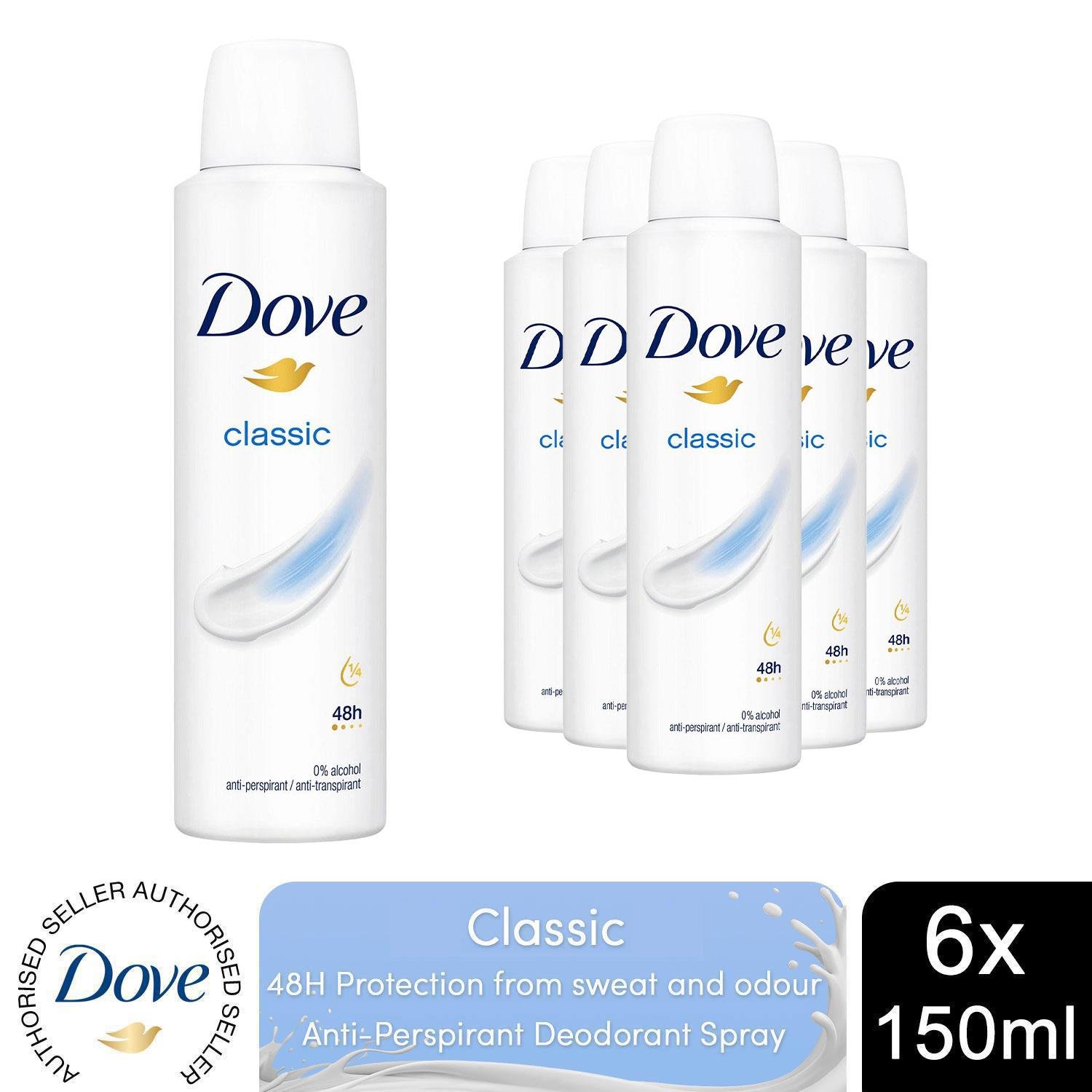 Dove Anti-Perspirant with 48H Sweat Protection Deodorant Spray 150ml, 6 Pack