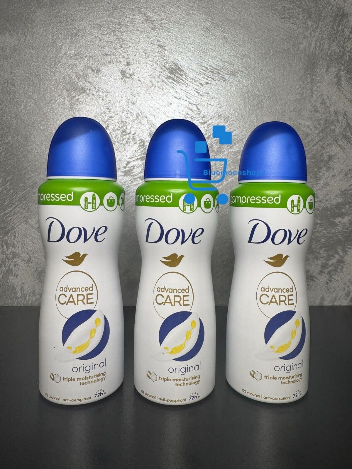 3 x 100ml Dove Compressed Deodorant Antiperspirant Spray Travel Size 72h
