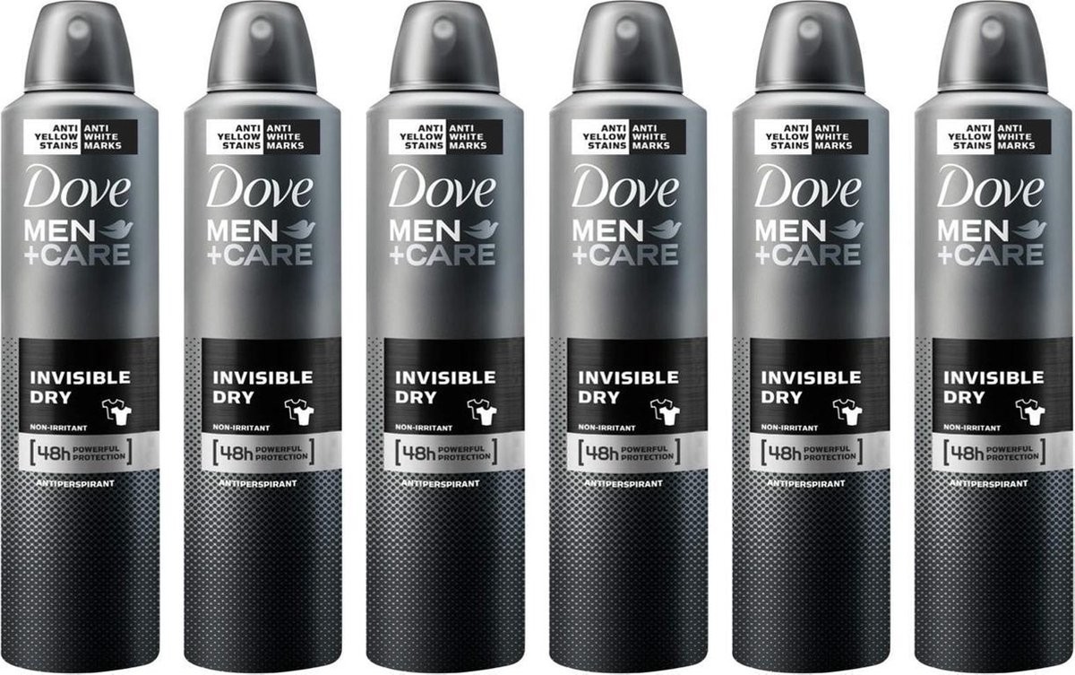 6 x 250ml Dove Men Invisible Dry Anti-Perspirant Deodorant Spray 48h Protection