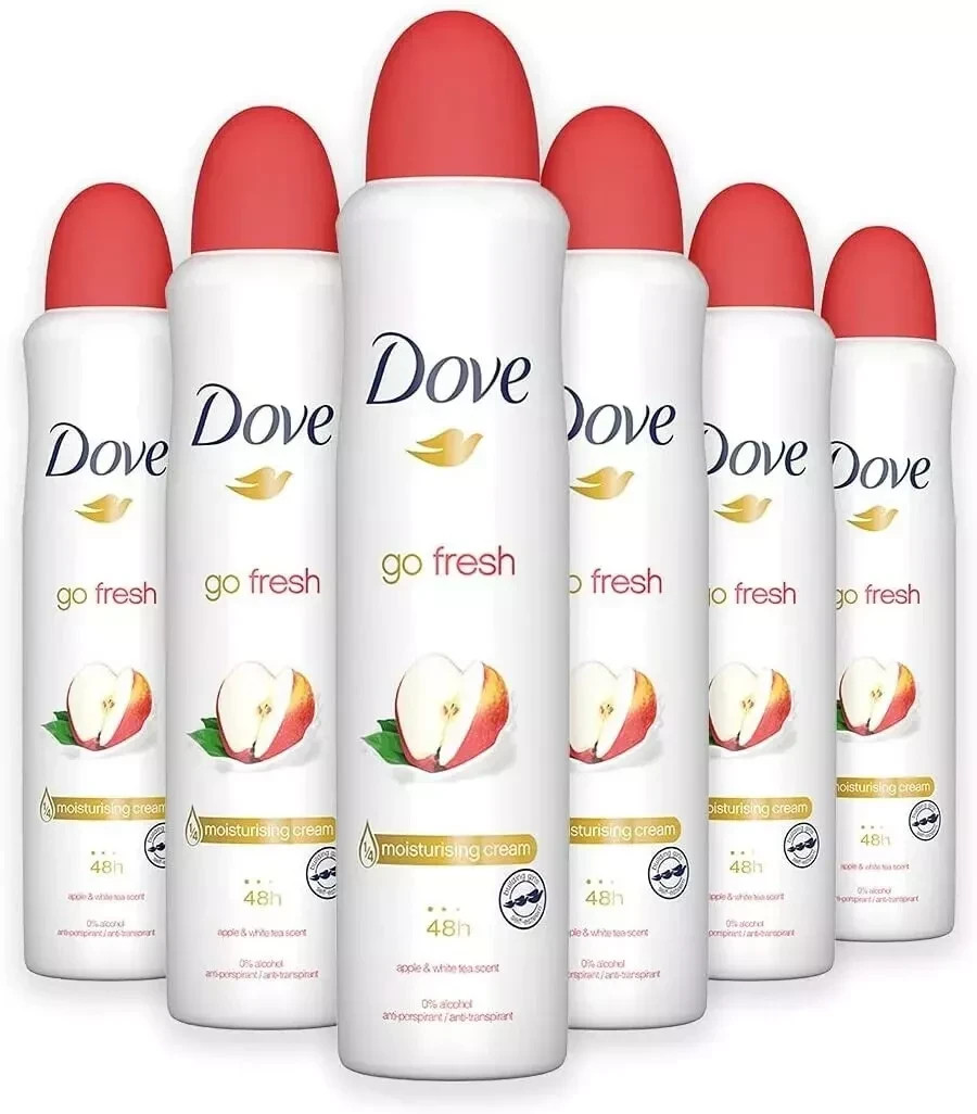 6 x 250ml XL Dove Apple & White Tea Scent Deodorant Spray Antiperspirant 🍎