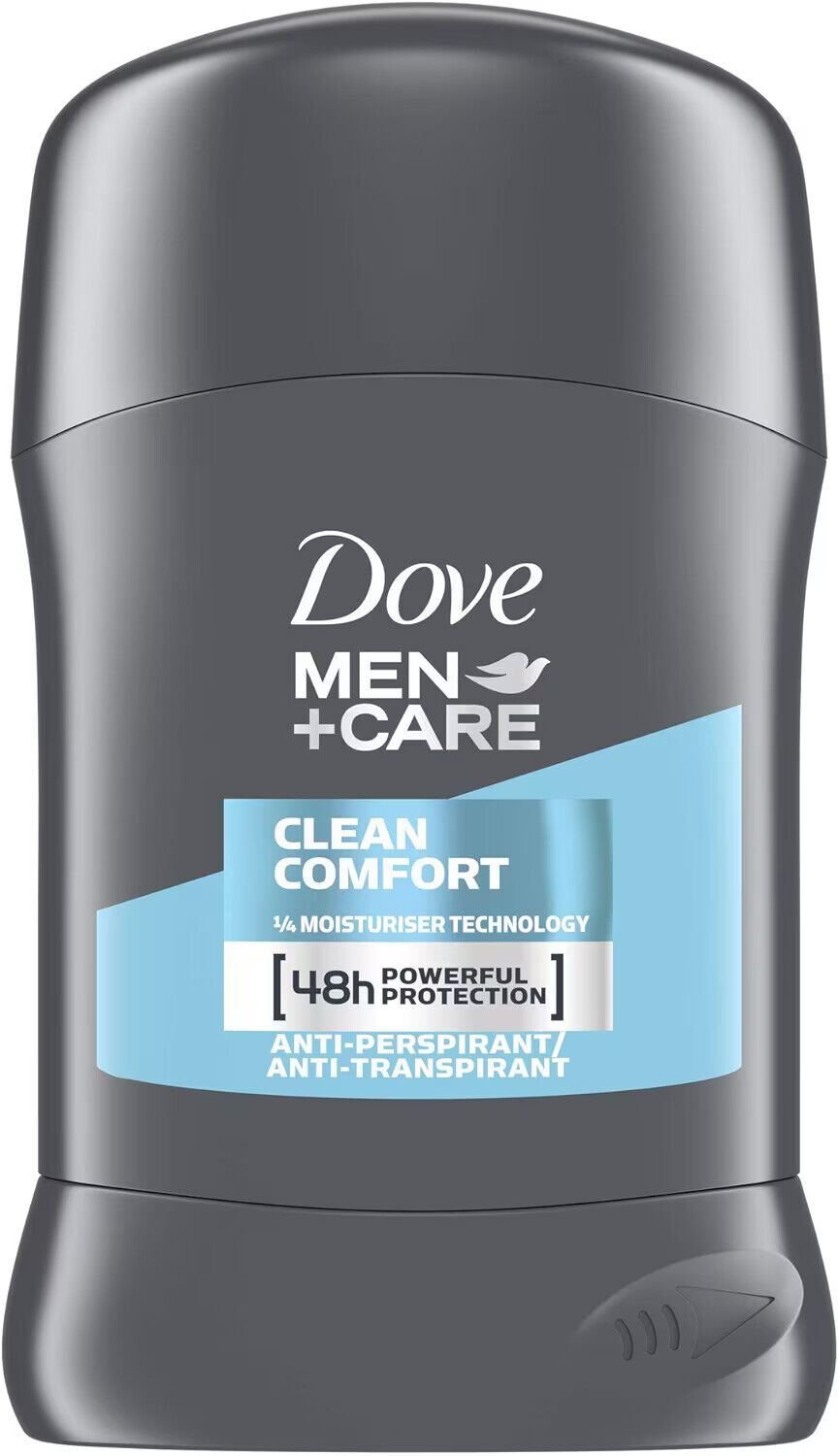 Dove Men+Care Clean Comfort deodorant with ¼ moisturiser technology Anti-perspirant Stick for 48-hour sweat and odour protection 50 ml