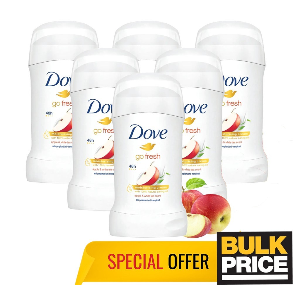 Dove Go Fresh Apple White Tea Deodorant Stick 48H Sweat Odor Protection 6-Pack