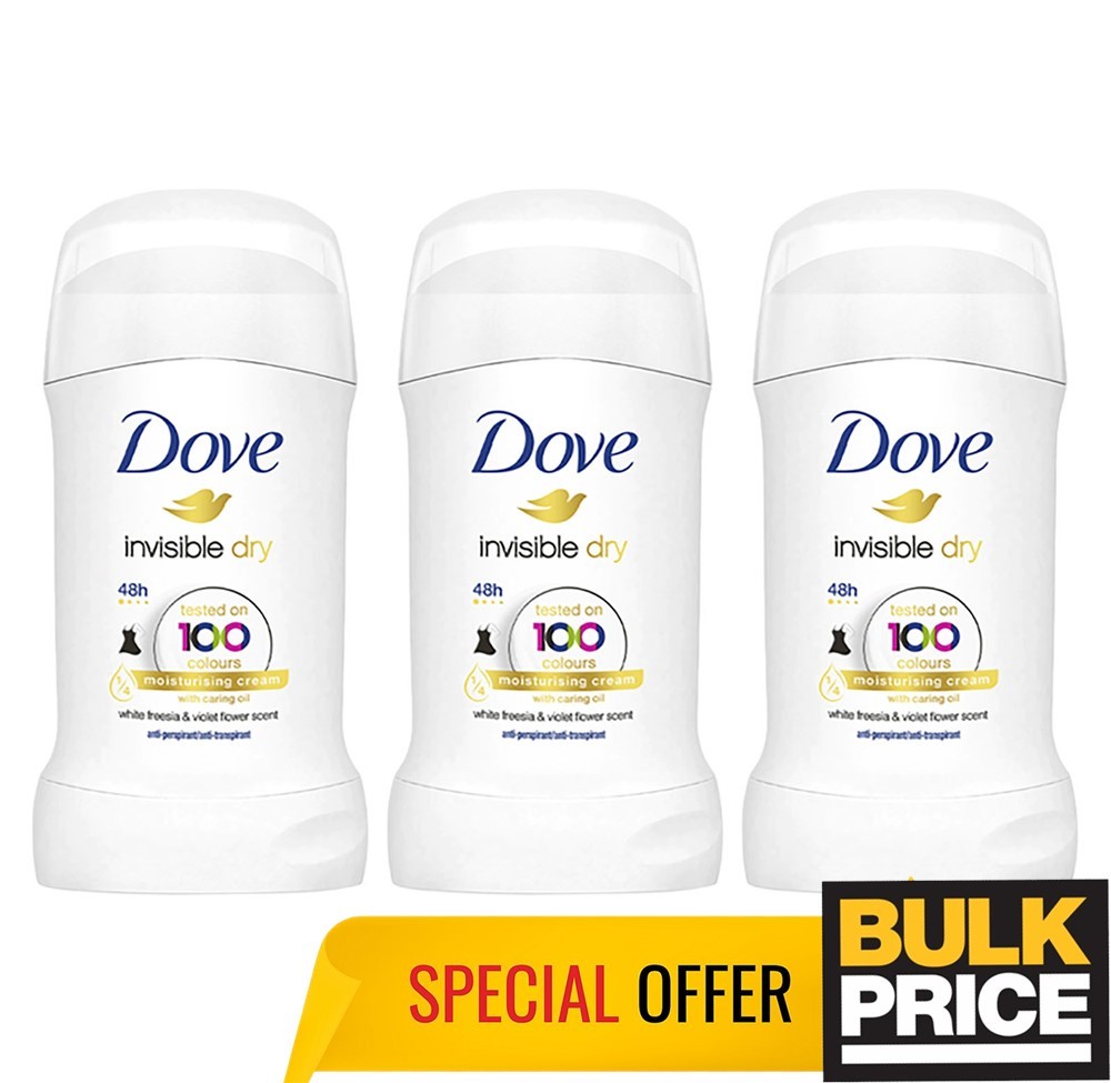 Dove Invisible Dry Women's Deodorant Stick No White Marks 40ml 3-Pack Bulk Deal