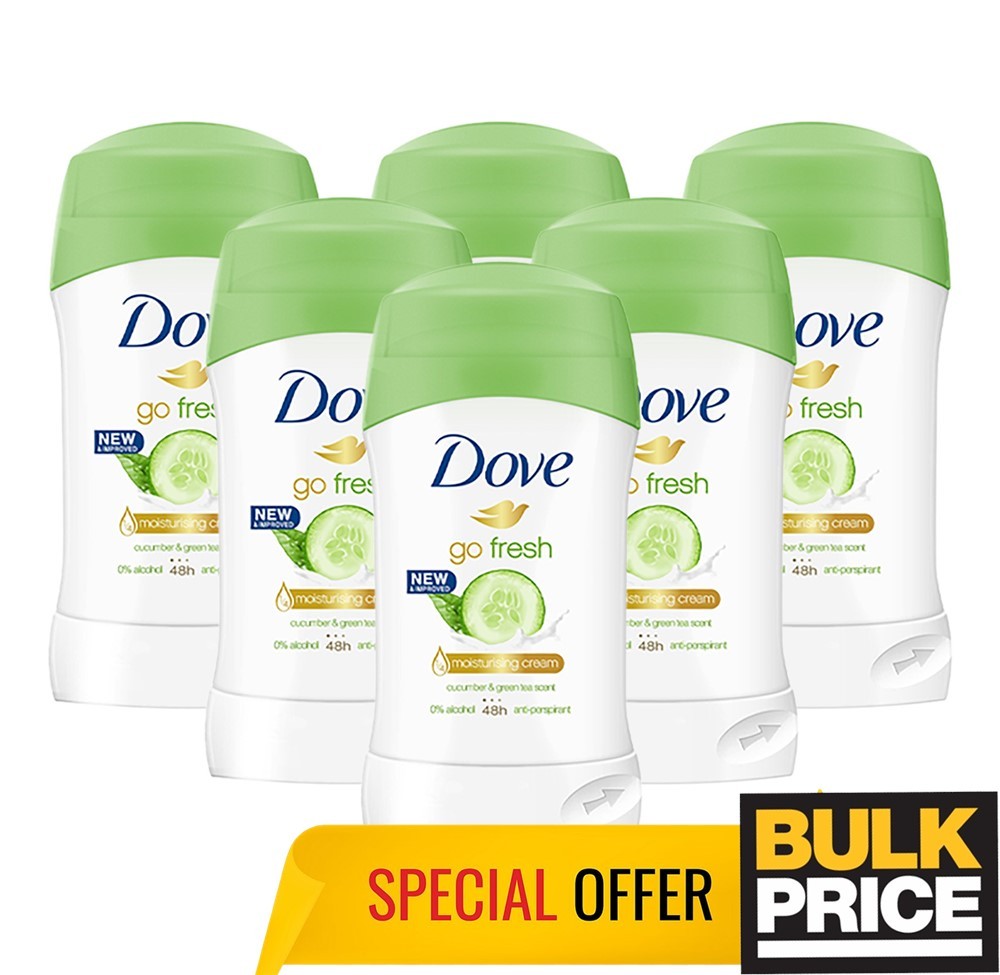 Dove Go Fresh Cucumber Stick Deodorant Moisturizer 48H Sweat Odor Protect 6-Pack