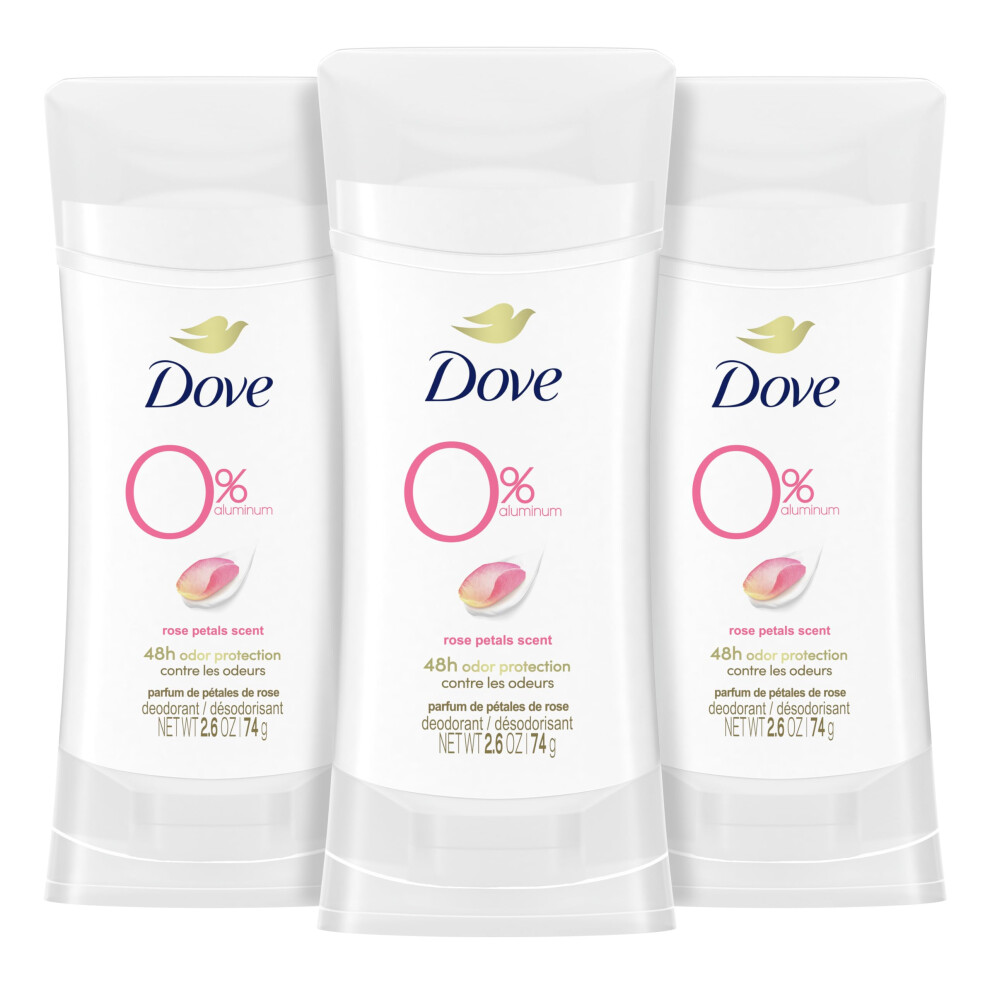 Dove 0% Aluminum Deodorant Stick Rose Petals 3 Count Non-irritating Deodorant for Underarm Care Kindest Aluminum Free Deodorant 2.6 oz