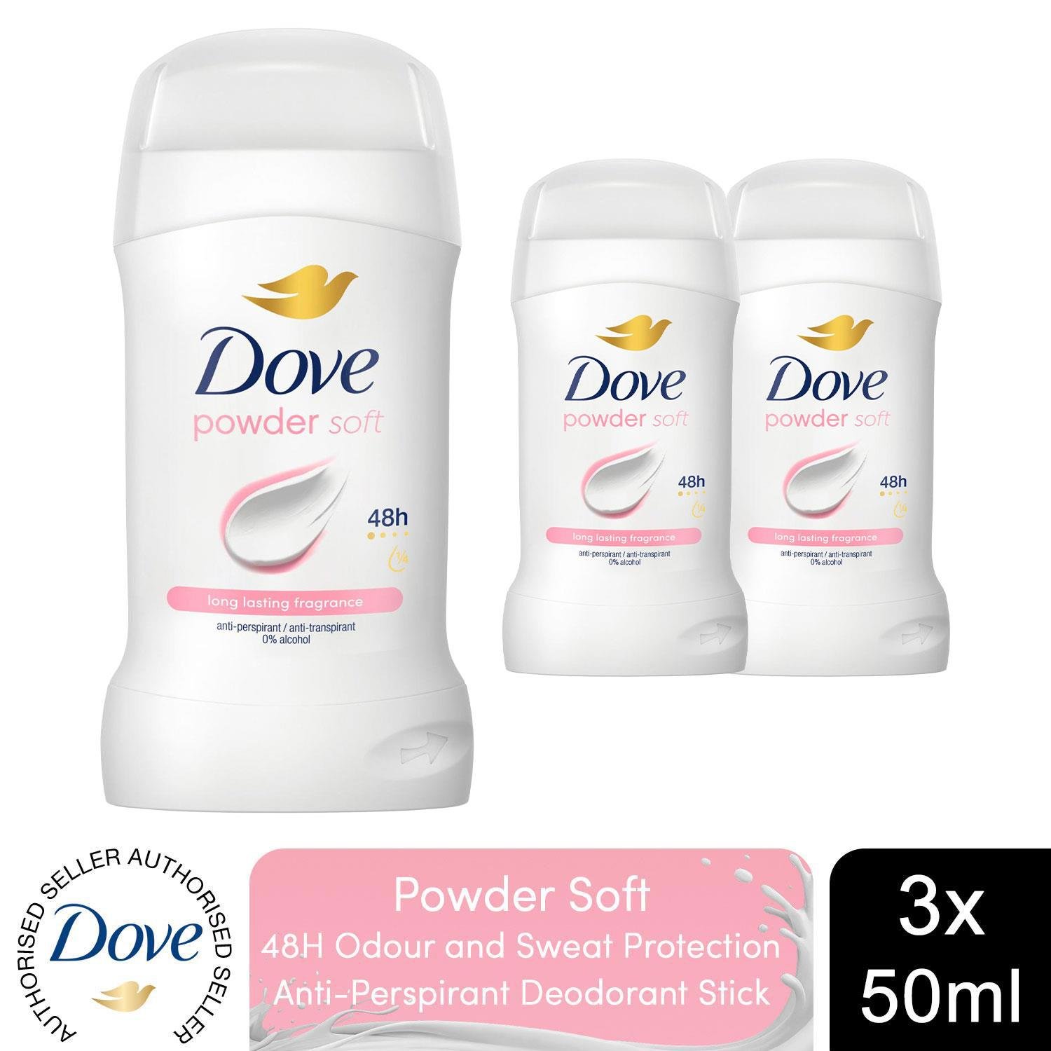 Dove Powder Soft Women's Antiperspirant Deodorant Cream Stick for 48 hour sweat protection and long-lasting fragrance with ¼ moisturising cream 50 ml