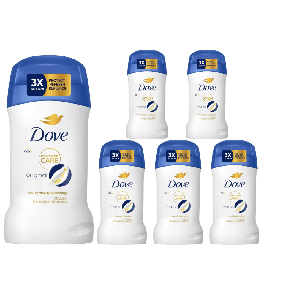 6 x 50ml Dove Antiperspirant Deodorant Stick Original 72h Advanced Protection