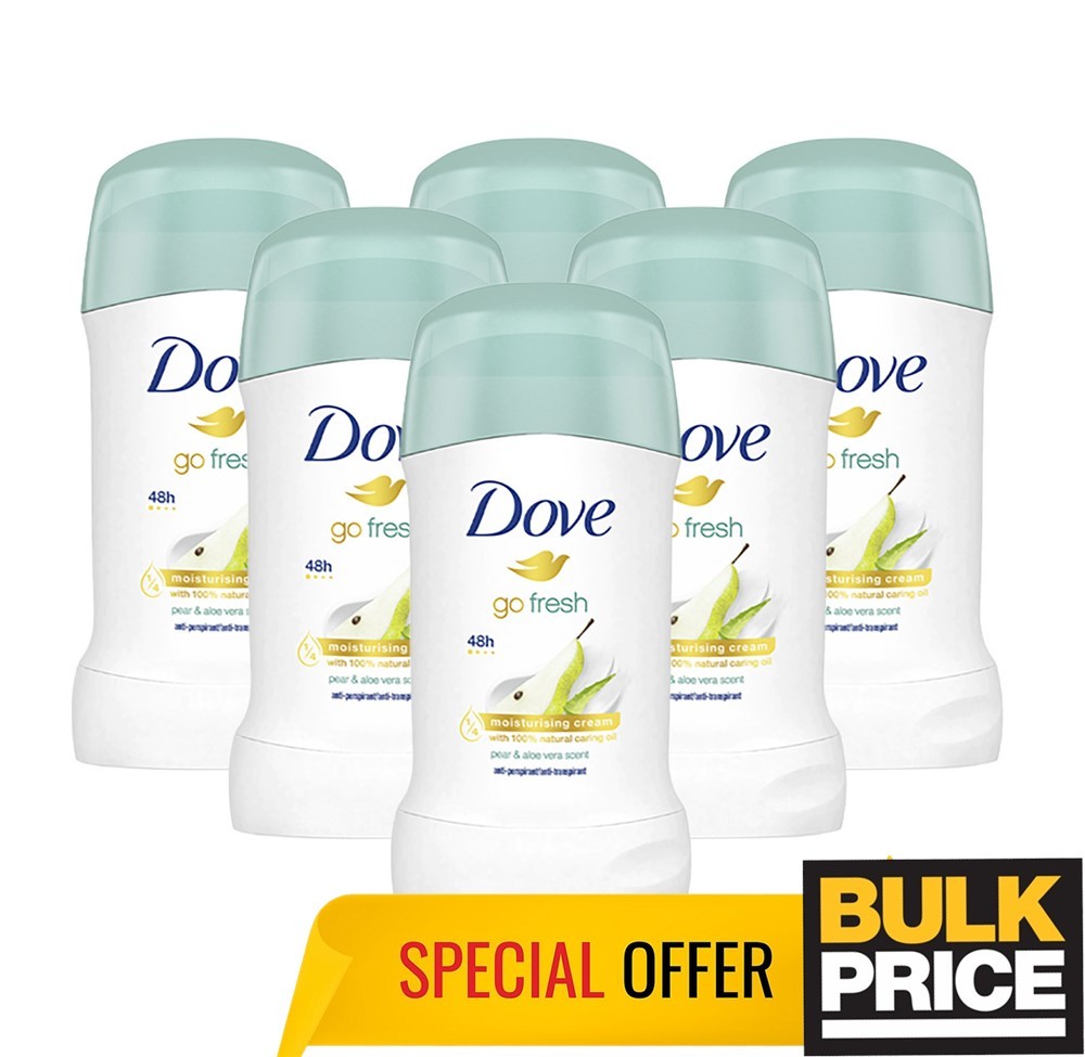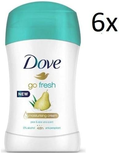 6 x 40ml Dove Go Fresh Pear & Aloe Vera 48H Anti-Perspirant Deodorant Stick