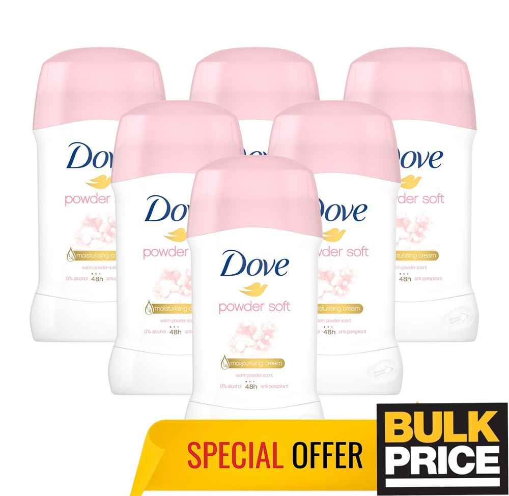 Dove Powder Soft 48H Sweat Odor Protection Stick Deodorant Sensitive Skin 6-Pack