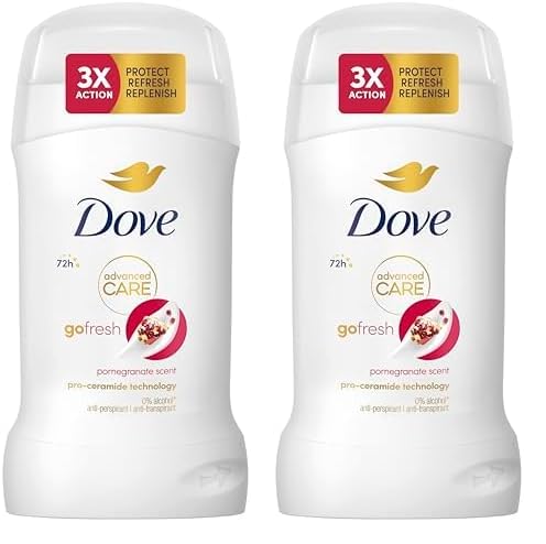 Dove Advanced Care Go Fresh Pomegranate Anti-Perspirant Cream Women's Deodorant Stick with pro-ceramide technology for 72 hours sweat protection 50 ml (Pack of 2)
