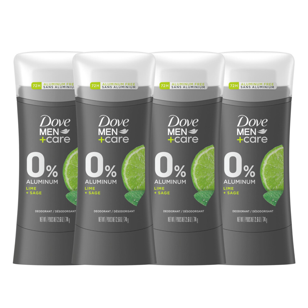 Dove Men+Care Deodorant Stick for 72h odour protection Lime + Sage with 0% Aluminium, 74g x 4 pack