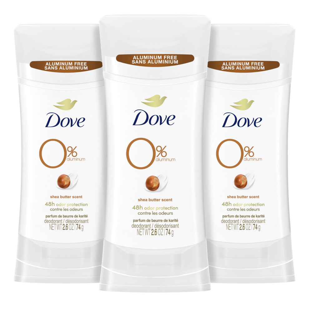 Dove Deodorant Stick Shea Butter 3 Count Non-irritating Deodorant for Underarm Care Kindest Aluminum Free Deodorant 2.6 oz