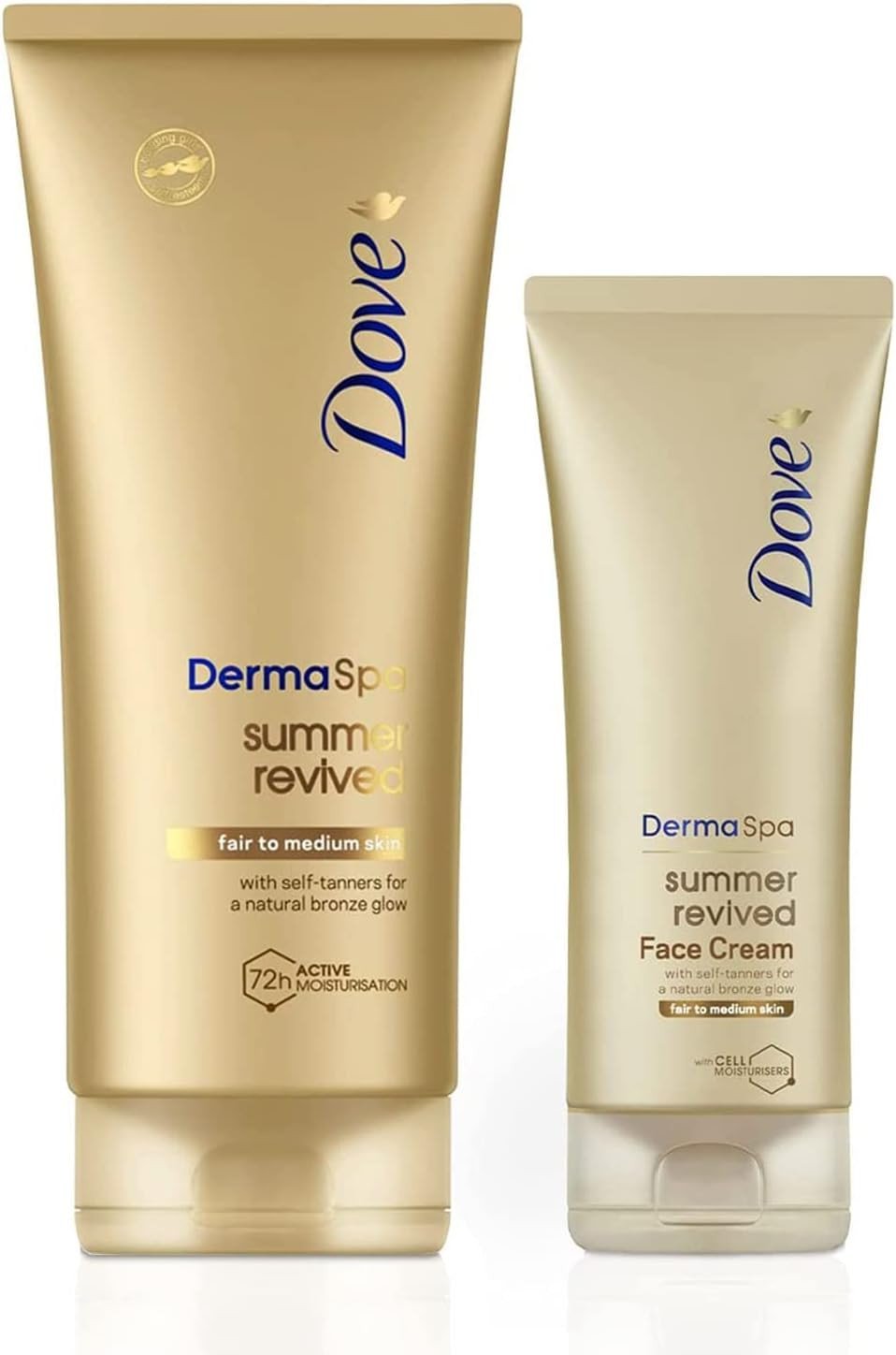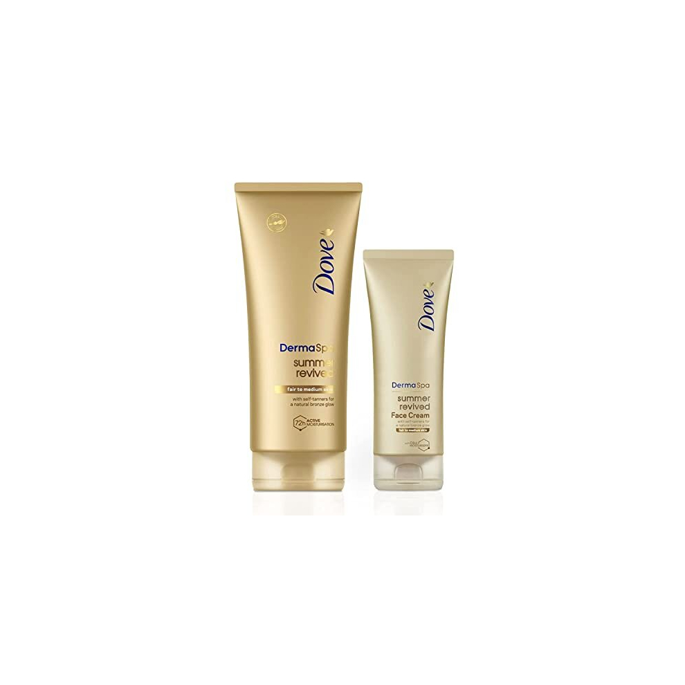 Dove Unilever DermaSpa Body Lotion Summer Revived Self-Tanning Medium to Dark, 200ml with Dove Derma Spa Face Cream Summer Revived Medium to Dark,