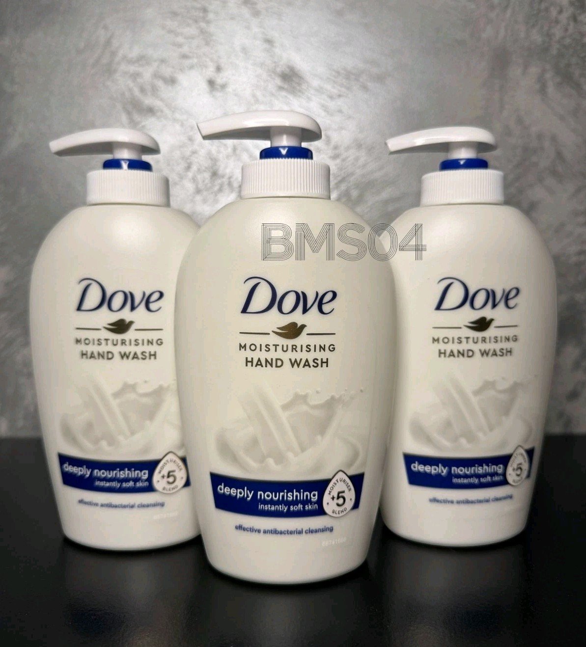 3 x 250ml Dove Nourishing Hand Wash Lotion Soap Dispenser