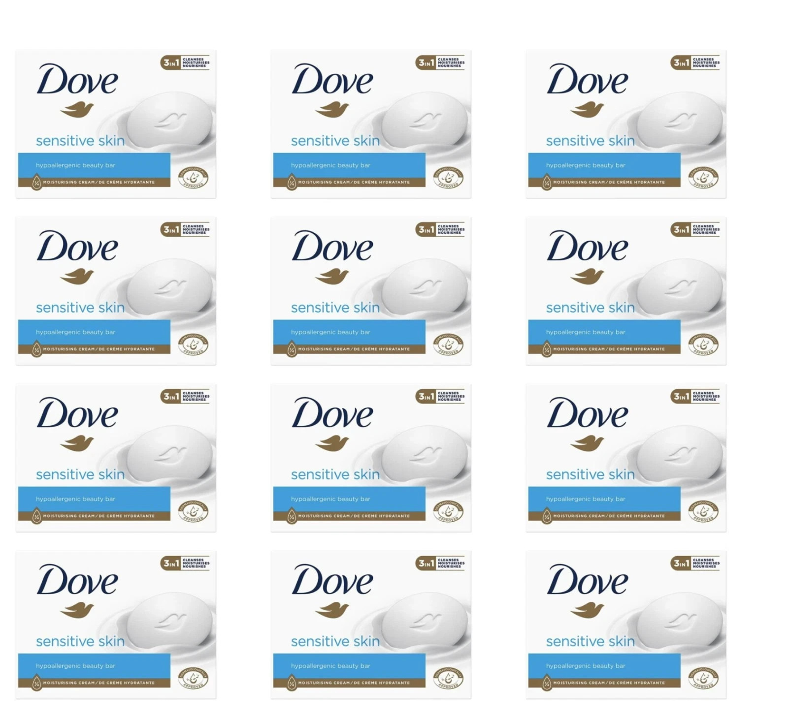 12 x 90g Dove Sensitive Skin Soap Hypoallergenic Beauty Bar FREE POST UK