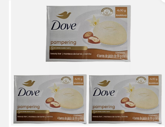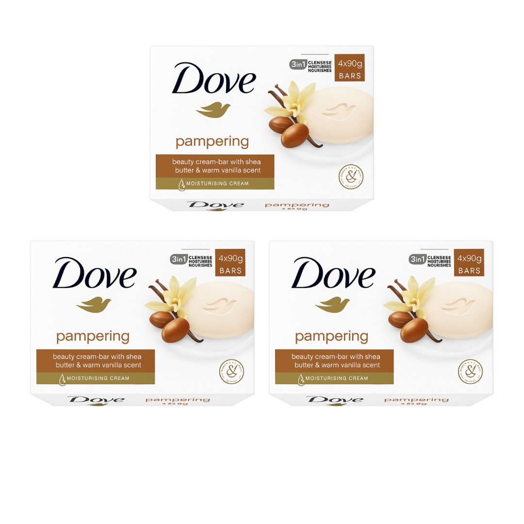 Dove Pampering Shea Butter & Vanilla Scented Soap Bars 4 x 90g - Pack of 3